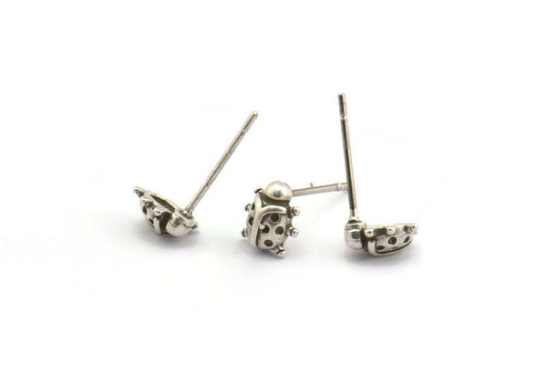 Silver Ladybug Earring, 12 Antique Silver Plated Brass Ladybug Stud Earrings (7mm) N1178