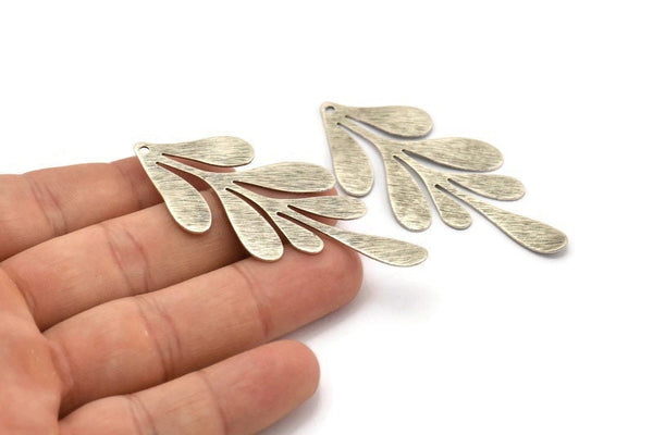 Antique Silver Plated Brass Textured Leaf Charm Earrings With 1 Hole