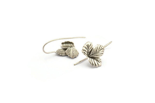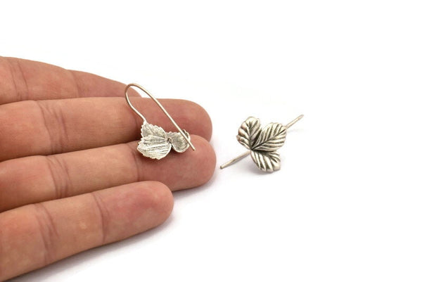 Silver Leaf Earring, 2 Antique Silver Plated Brass Leaf Stud Earrings, Findings (19x16x0.80mm) N1230 Q0550