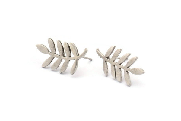 Silver Leaf Earring, 4 Antique Silver Plated Brass Leaf Stud Earrings, Findings (23x12x1.2mm) N1631 H1506