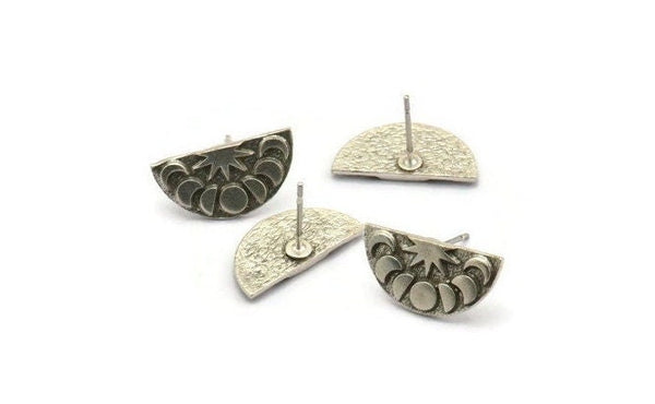 Silver Moon Earring, 4 Antique Silver Plated Brass Moon Phases Stud Earrings (17x9x1.5mm) N1924