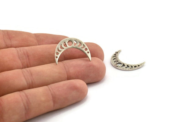 Antique Silver Plated Brass Moon Phases Stud Earrings