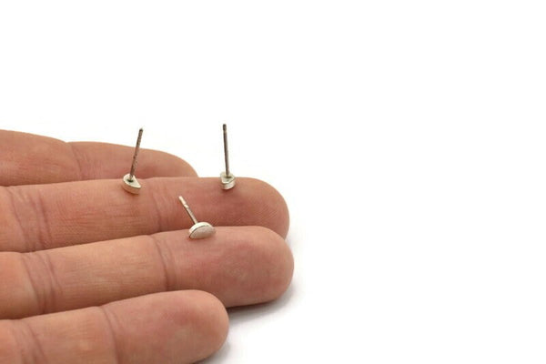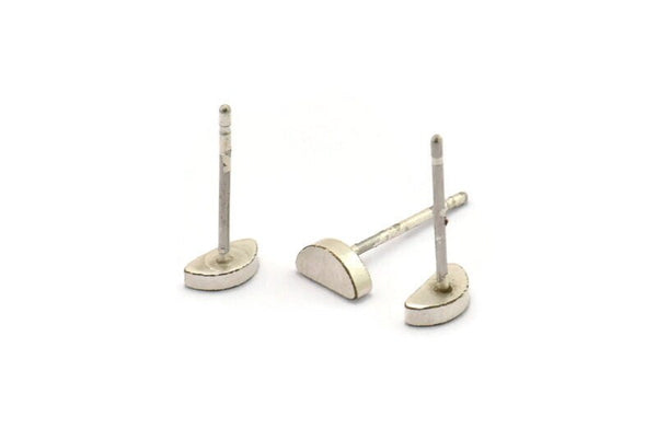 Silver Moon Earring, 8 Antique Silver Plated Brass Half Moon Stud Earrings (6x3mm) D1405