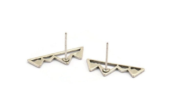 Antique Silver Plated Brass Mountain Shaped Stud Earrings
