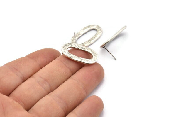 Hammered Antique Silver Plated Brass Oval Stud Earrings