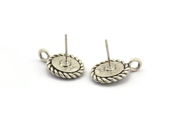 Antique Silver Plated Brass Oval Earrings With 1 Loop - Pad Size 6x8mm
