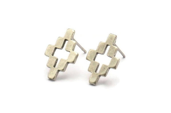 Antique Silver Plated Brass Stud Earrings