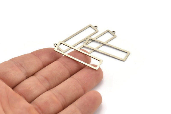 Silver Rectangle Charm, 12 Antique Silver Plated Brass Rectangle Charms With 1 Loop Earrings, Findings (38x10x0.80mm) D1051
