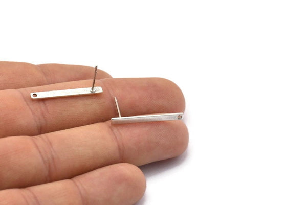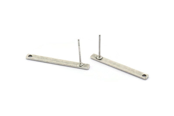 Silver Rectangle Earring, 10 Antique Silver Plated Brass Stud Earrings With 1 Hole (25x2.5x0.80mm) E392 A1773