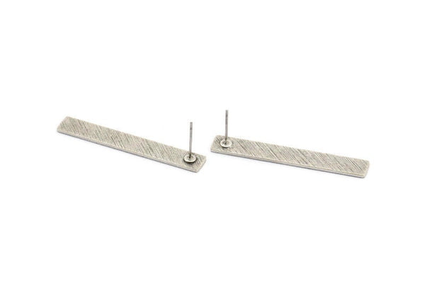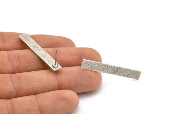 Silver Rectangle Earring, 4 Textured Antique Silver Plated Brass Rectangle Stud Earrings (41x6x0.90mm) M998 A1991