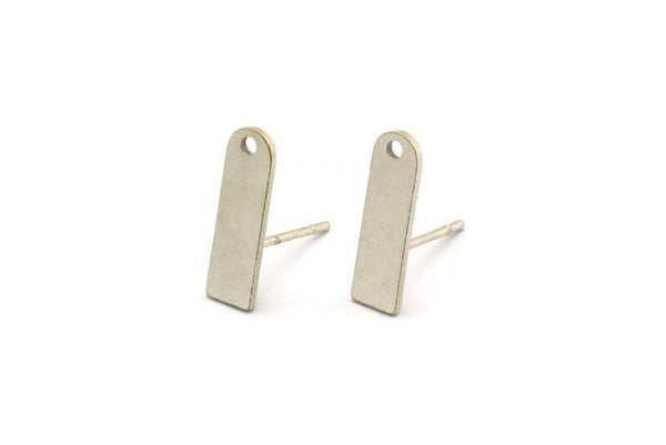Antique Silver Plated Brass Rectangle Stud Earrings With 1 Hole