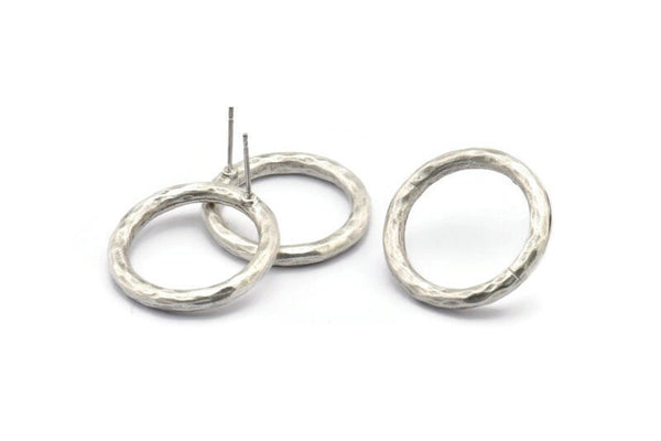 Hammered Antique Silver Plated Brass Ring Stud Earrings