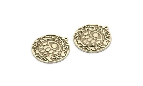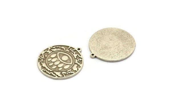 Silver Round Charm, Antique Silver Plated Brass Round Charm With 1 Loop, Eye Findings, Teardrop Findings (30x27.5x1.5mm) N2201