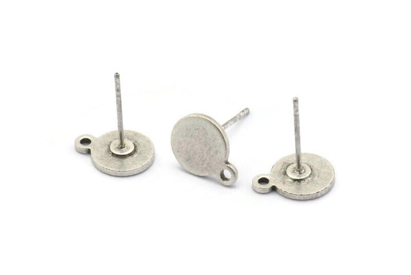 Antique Silver Plated Brass Round Stud Earrings With 1 Loop