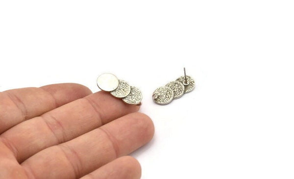 Antique Silver Plated Brass Circle Stud Earrings With 1 Loop
