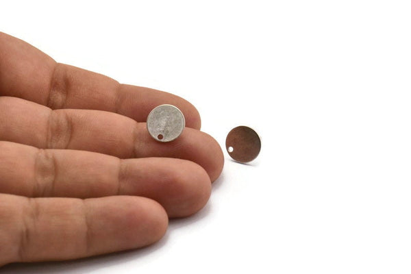 Silver Round Earring, 8 Antique Silver Plated Brass Round Stud Earrings With 1 Hole (11x0.80mm) M02556 A0071