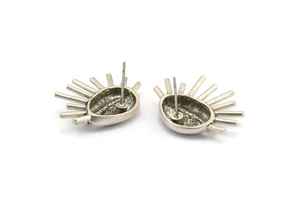 Silver Shell Earring, 2 Antique Silver Plated Brass Cowrie Shell Stud Earrings, Findings (26x20mm) N1007 Q0963