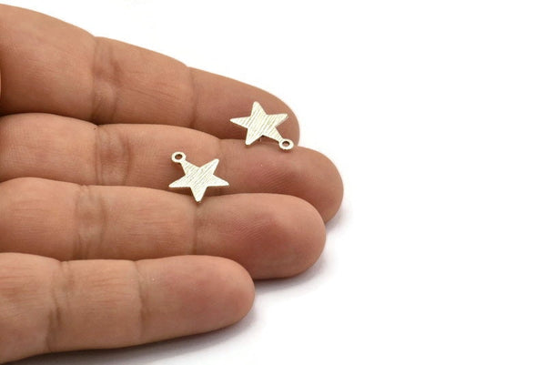 Textured Antique Silver Plated Brass Star Stud Earring With 1 Loop