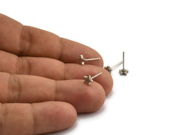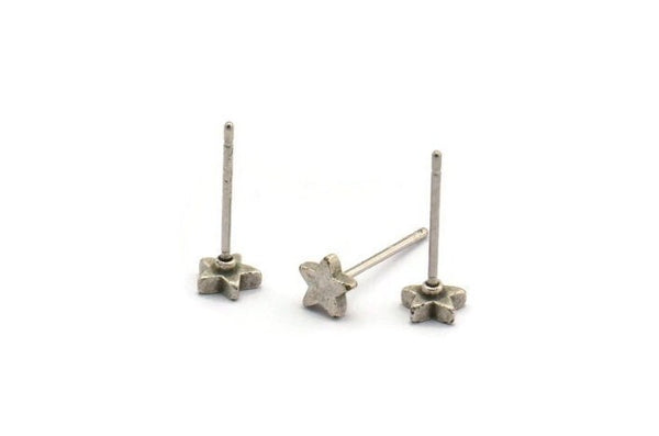 Antique Silver Plated Brass Star Stud Earrings