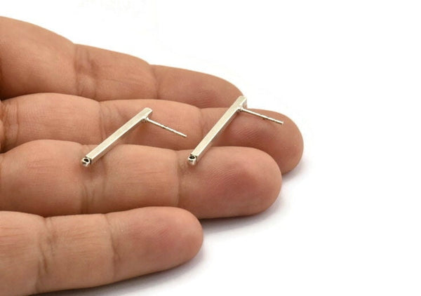 Antique Silver Plated Brass Stick Stud Earrings With 1 Hole