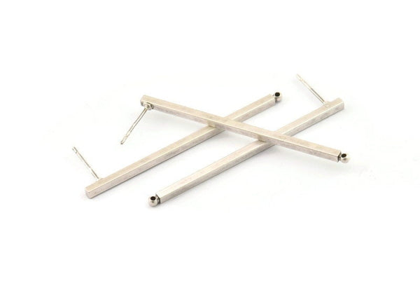 Antique Silver Plated Brass Stick Stud Earrings With 1 Hole