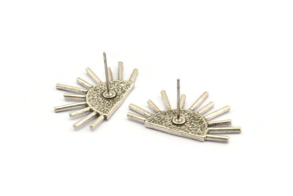 Silver Sun Earring, 2 Antique Silver Plated Brass Sunshine Stud Earrings (29x17mm) N0903