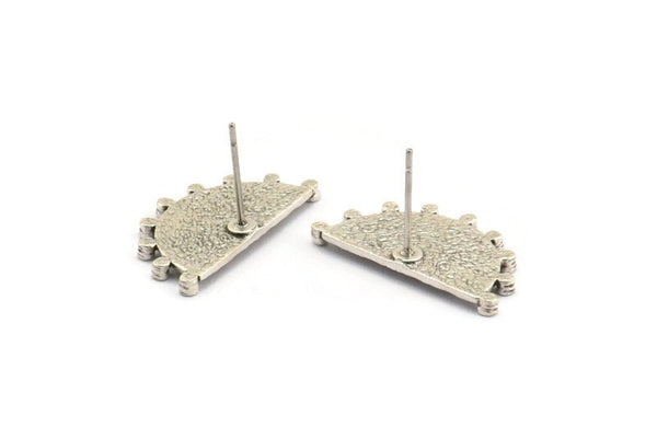 Hammered Antique Silver Plated Brass Sunshine Stud Earrings