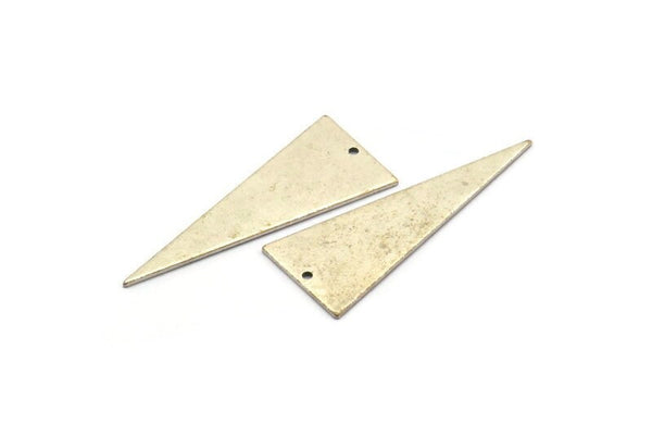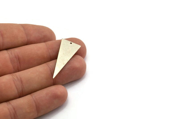 Silver Triangle Charm, 6 Antique Silver Plated Brass Triangle Charms With 1 Hole, Earrings, Findings (37x15x0.80mm) D1351