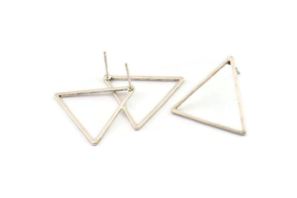 Antique Silver Plated Brass Triangle Stud Earrings