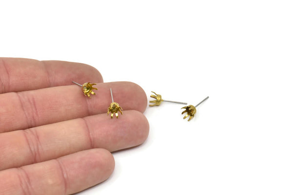 Raw Brass Earring Posts / Stainless Steel 7x17mm / 6 Mm Pad
