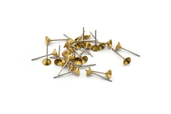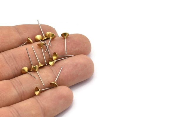 Stainless Steel Earring Posts With Raw Brass 5mm Cup