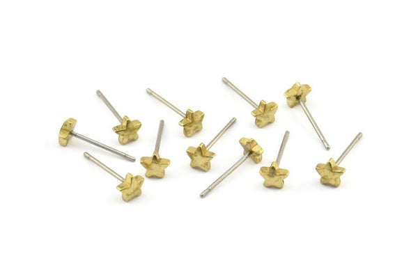 Stainless Steel Earring Posts With Raw Brass Star Earring Stud