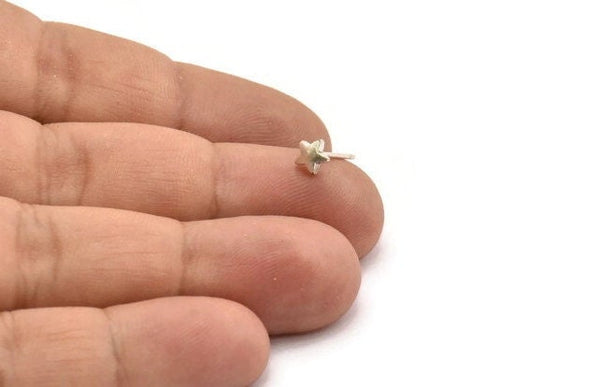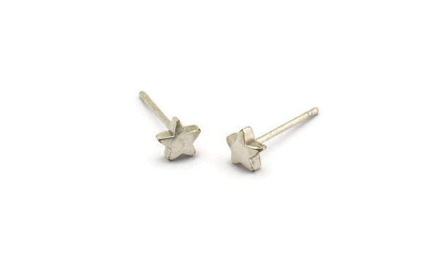 Stainless Steel Earring Posts With Antique Silver Plated Brass Star Earring Stud