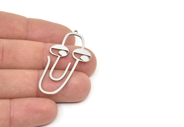 Steel Face Charm, Stainless Steel Paperclip Shaped Charms With 1 Loop, Earring Findings (47x23x0.80mm) SMP2117