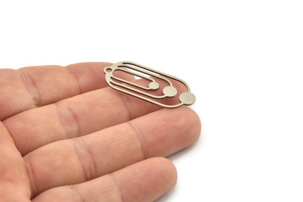 Steel Oval Charm, 6 Stainless Steel Oval Charms With 1 Loop, Earring Charms (35x15x0.80mm) SMP1132 Y081