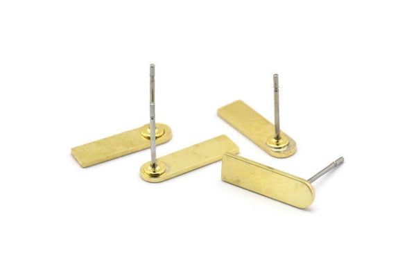 Stud Earring - 12 Raw Brass Stud Earrings (14x4x0.80mm) M02581 A0107