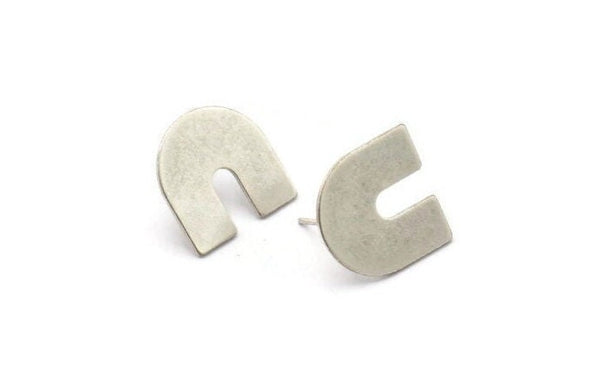 Stud Earring, 6 Antique Silver Plated Brass U Shaped Stud Earrings (15x0.80mm) M161 A1561