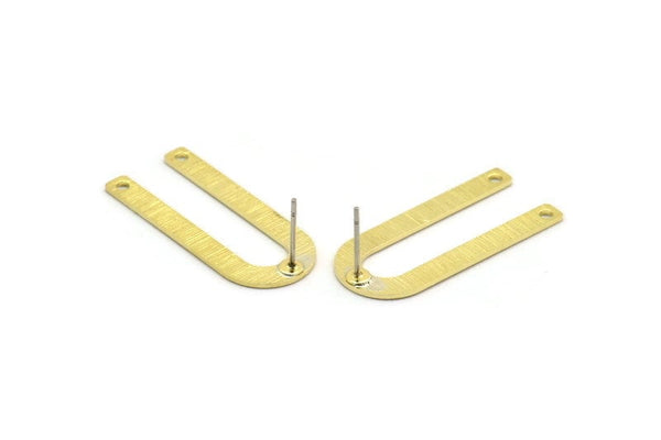 Stud Earring, 6 Textured Raw Brass U Shaped Stud Earrings With 2 Holes (30x13x0.80mm) M169 A5579