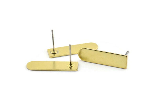 Stud Earring, 8 Raw Brass Geometric Stud Earrings (23x6x0.80mm) M079 A2014
