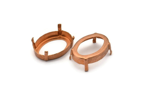 Vintage Copper Setting, 4 Vintage Raw Copper Oval Bezel Settings With 4 Prong (23x16mm) L-6