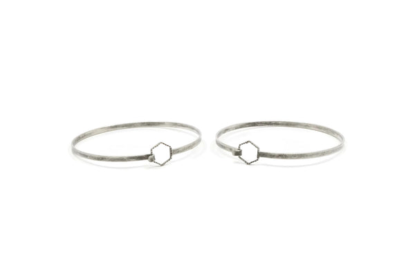 Antique Silver Plated Brass Wire Hexagon Minimalist Bracelet Bangle With Hexagon Locker BRC240 V065
