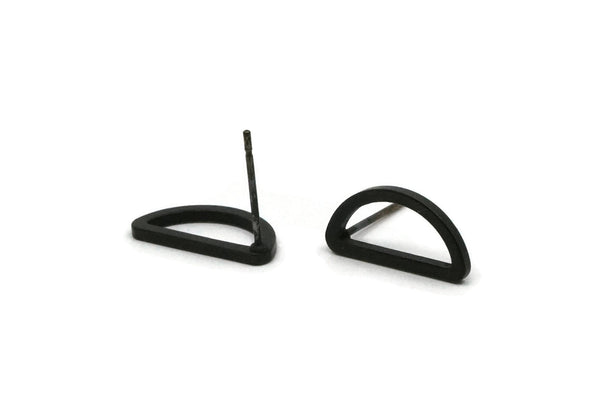 Oxidized Black Brass Half Moon Earring Posts