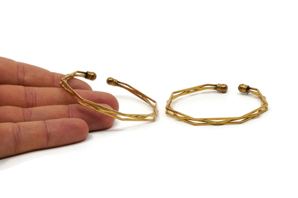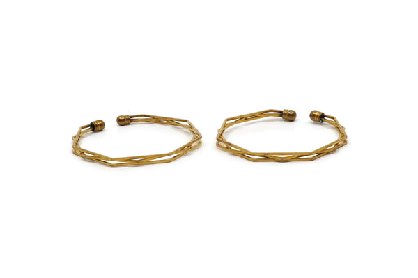 Bohemian Wavy Cuff, Raw Brass Adjustable Triple Wire Bracelets And Ball Ending BRC239
