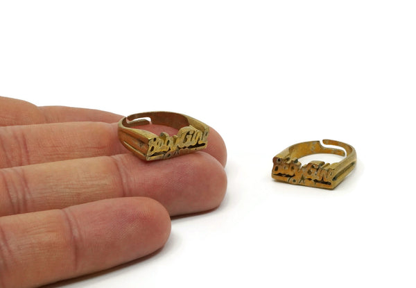 Brass Baby Girl Ring, 2 Raw Brass Adjustable Baby Girl Rings (17mm) SY0070