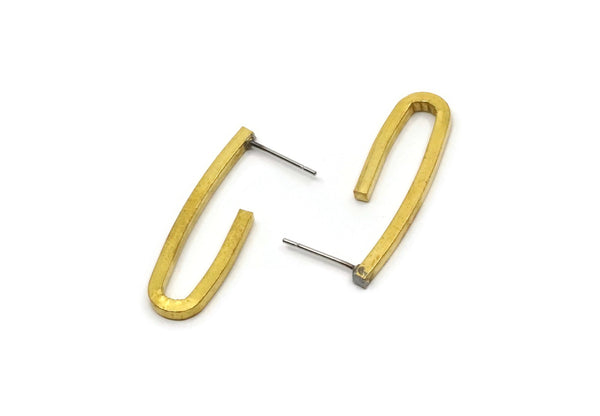 Brass Bar Stud, 4 Raw Brass Bar Stud, Ear Studs (32x10x2mm) E328