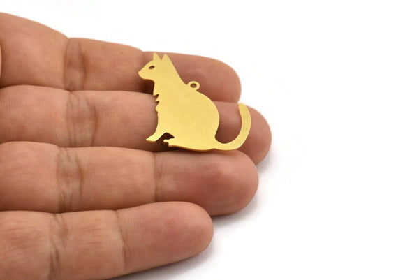 Brass Cat Charm, 4 Raw Brass Cat Charms With 1 Loop (31x27x0.60mm) A5315
