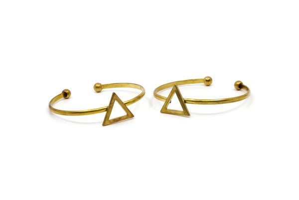 Brass Cuff Bangle, 2 Raw Brass Triangle Cuff Bracelet Ball Ending Bangles BRC231