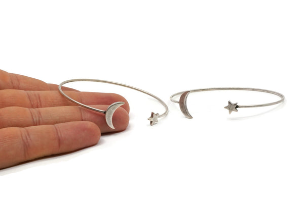 Silver Cuff, Antique Silver Plated Brass Moon And Star Ending Open Cuff BRC238 BRC234