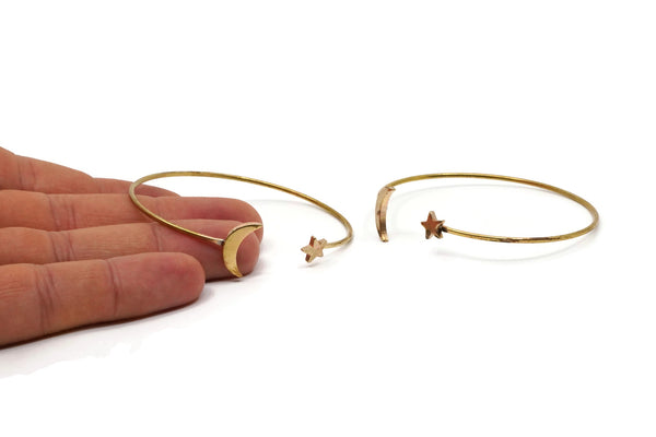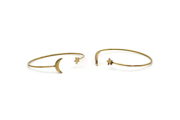 Brass Cuff, Raw Brass Moon And Star Ending Open Cuff BRC238