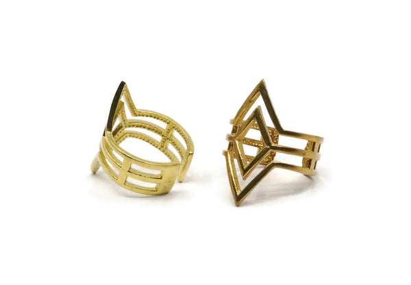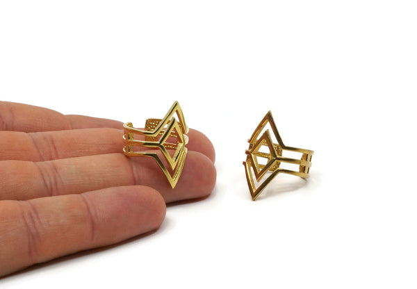 Brass Diamond Ring, 2 Raw Brass Adjustable Diamond Rings N0001